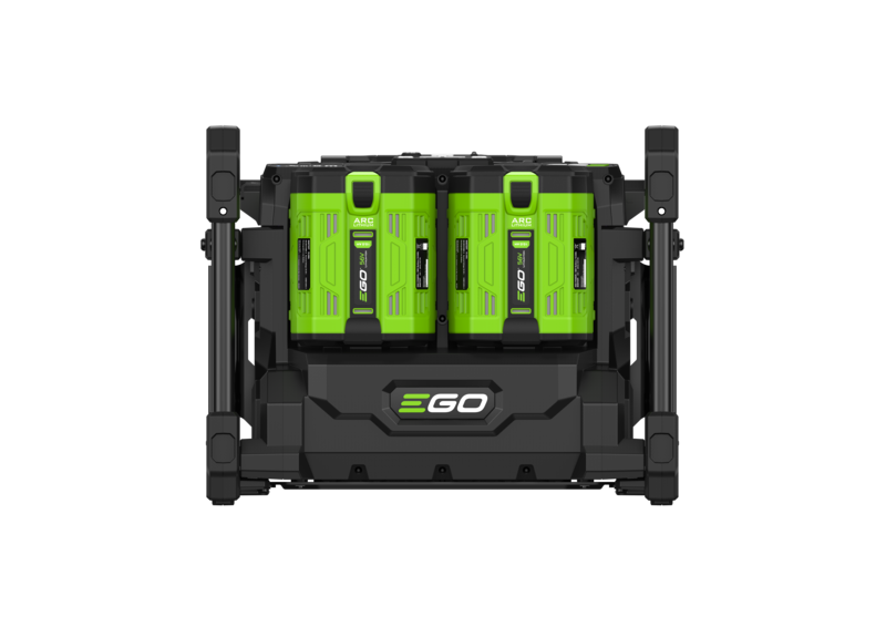 • Provides 2 x 700W charging ports for any EGO 56V ARC LithiumTM Batteries.