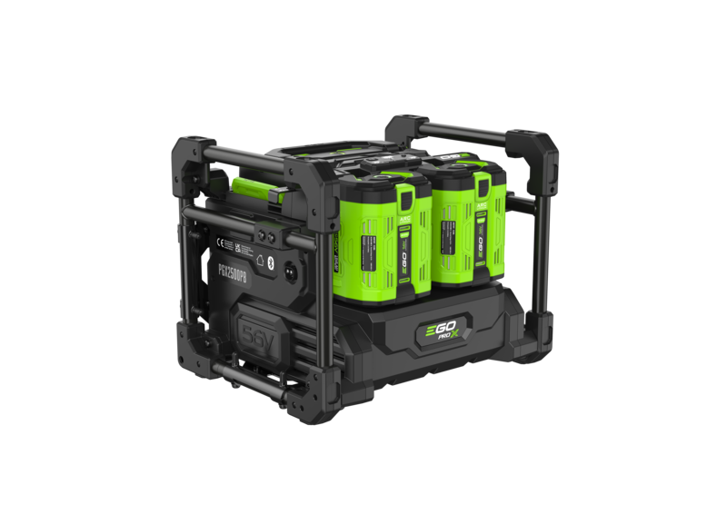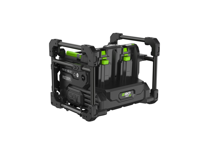 Suderinamas su visais EGO 56V ARC Lithium ir ARC Lithium MAX akumuliatoriais, jis yra galinga alternatyva kelių baterijų nešiojimui ir leidžia dirbti ilgą dieną be elektros tinklo. Jis jungiasi prie PGX Power Hub greitam įkrovimui iš tinklo ir integruojasi su PGX Overnight Charging Chain, kai reikia papildomos įkrovimo talpos dideliam kiekiui baterijų.