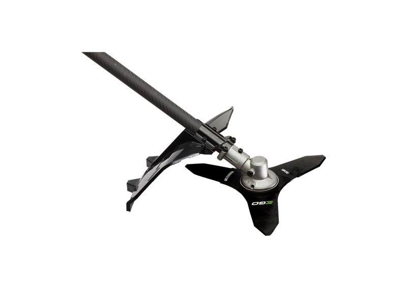Tripusių plieninių ašmenų (ABB1203) pjovimo plotis 30 cm, taigi prie sunkiausiai pasiekiamų vietų prieisite lengviau. Įrankis turi greičio keitimo jungiklį, padėsiantį dirbti našiai ir saugiai.